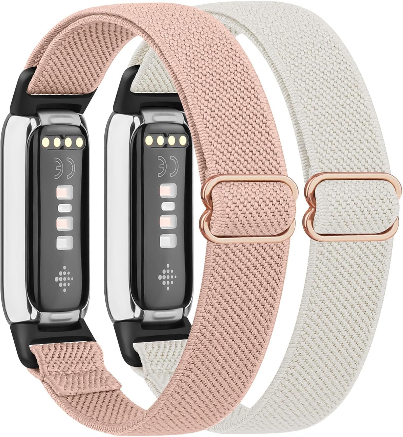 2 Pack Adjustable Elastic Bands for Fitbit Luxe Bands, Soft Stretchy Nylon Loop Strap Replacement Wristband for Fitbit Luxe/Luxe Special Edition Fitness Tracker Women Men