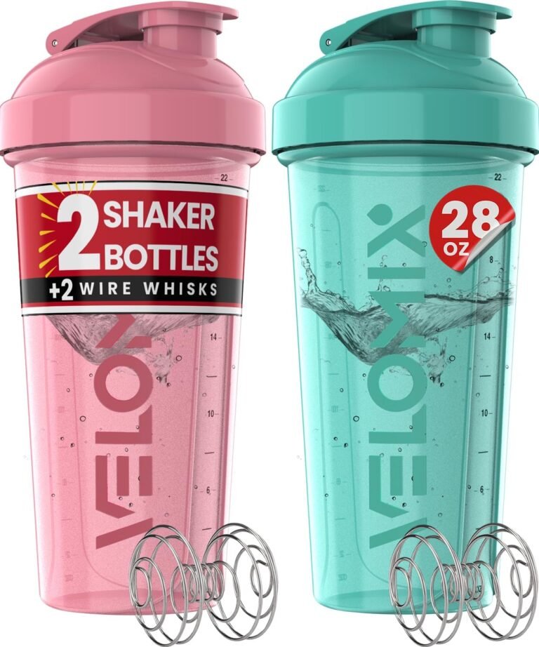 -2 Pack- 28 oz Protein Shaker Bottles for Protein Mixes – 2x Wire Whisk | Leak Proof Shaker Cups for Protein Shakes | Protein Shaker Bottle Pack | Shakers for Protein Shakes-Pink&Turquise